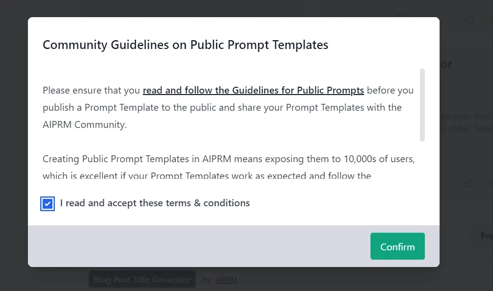 Check the box and click 'Confirm'