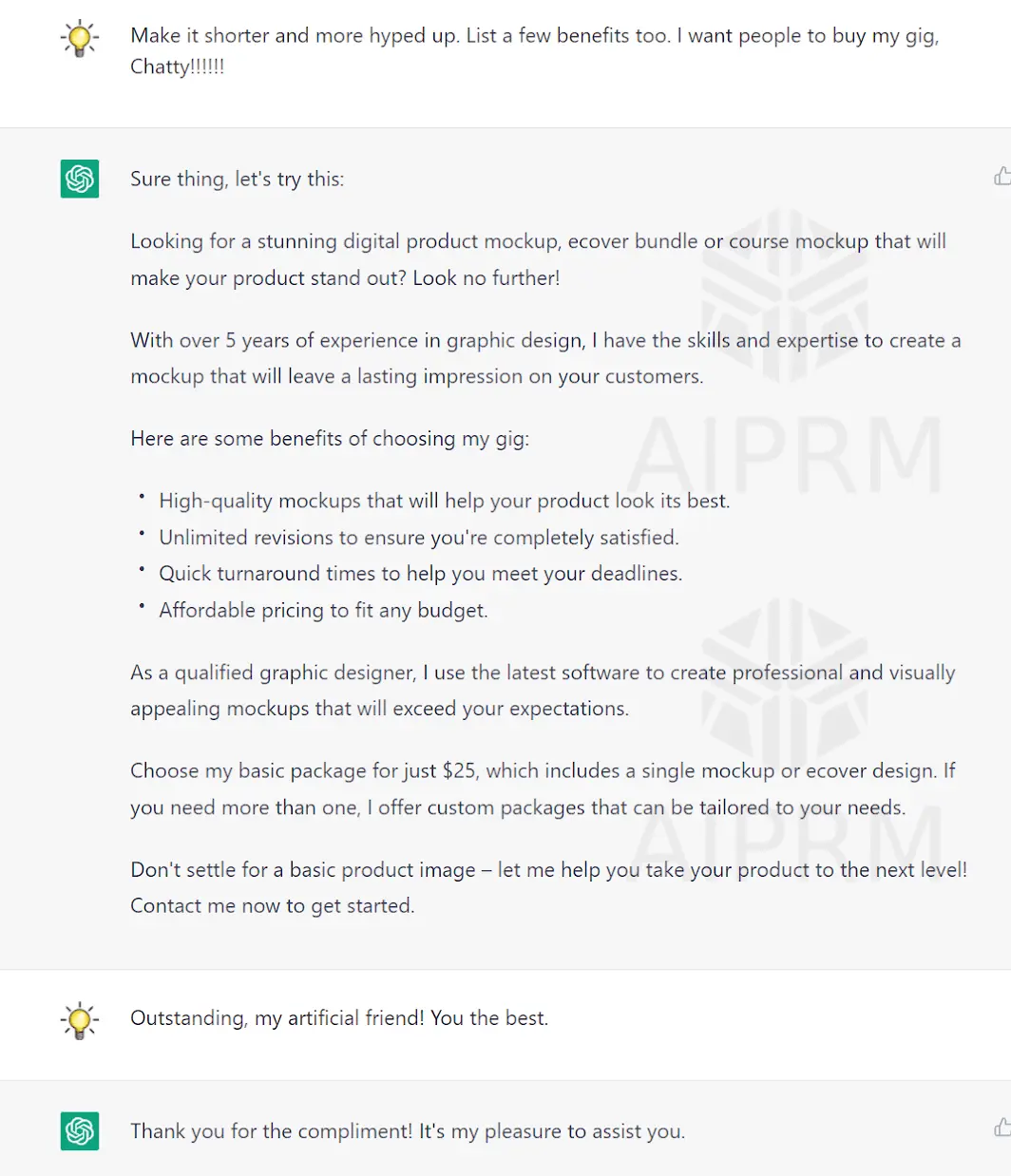 The whole point of this tutorial is to show you that the AIPRM extension with its vast library of prompts can shortcut the ChatGPT process and learning curve.