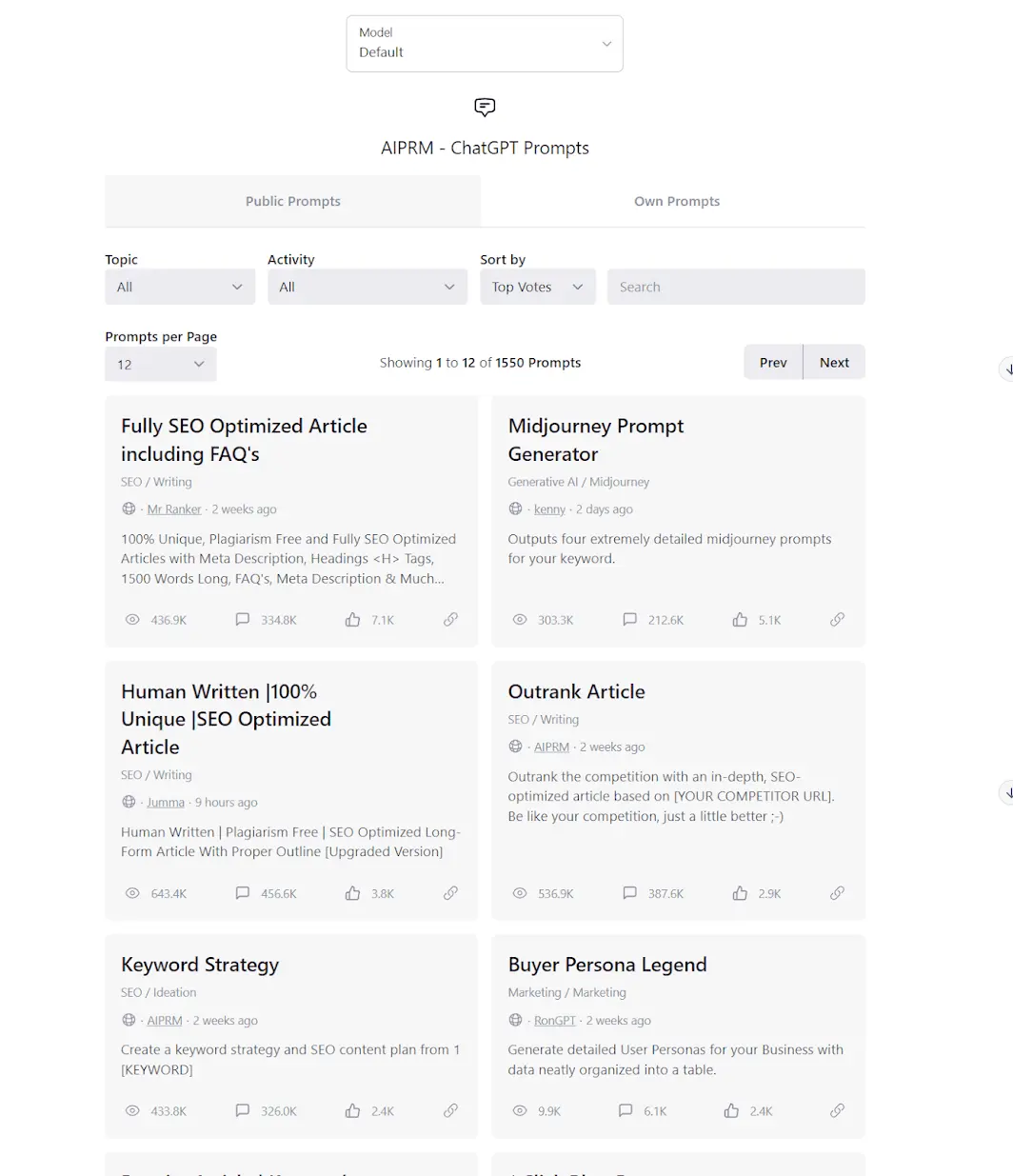 You can tell which prompts are good by the 'thumbs up' they receive.