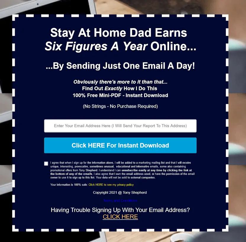 I took a screenshot of Tony Shepherd's landing page.