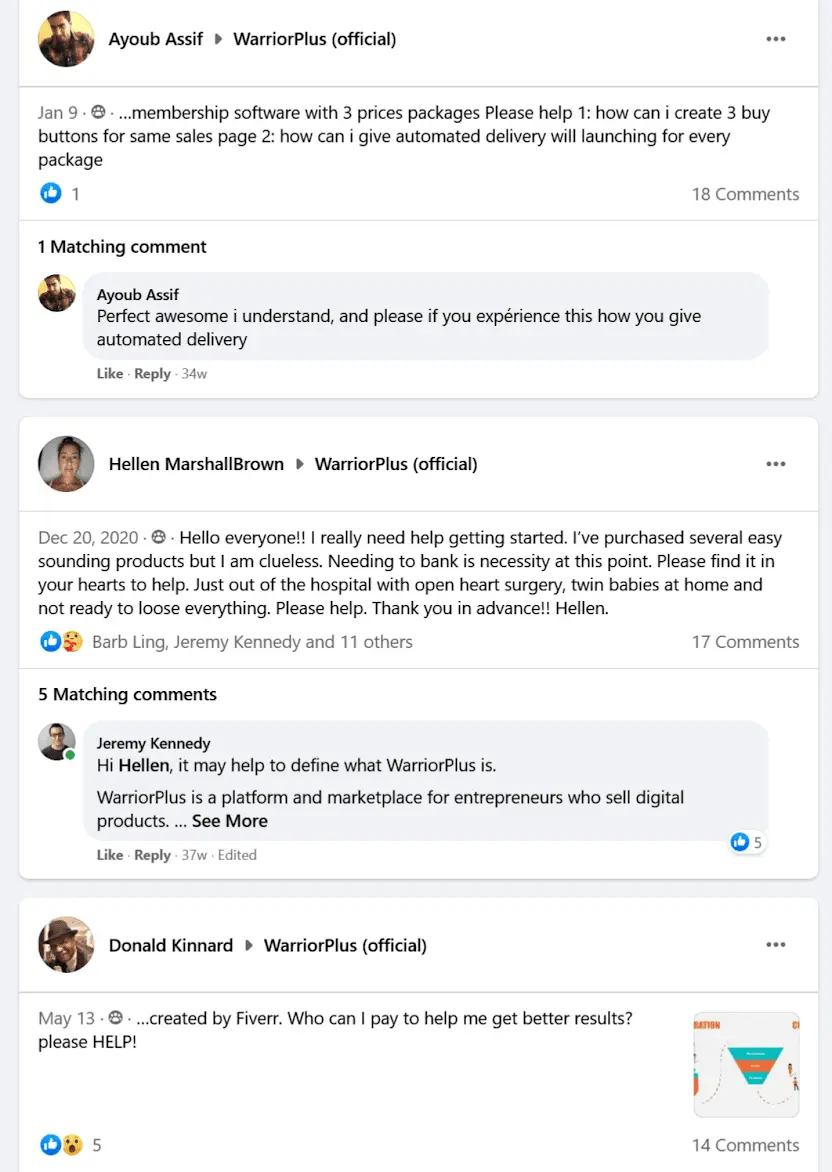 I went to the WarriorPlus support group...