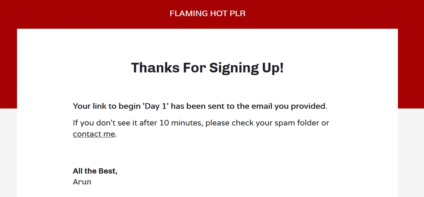 And was taken to this thank you page. Now I have the freebie and the marketer has nothing.