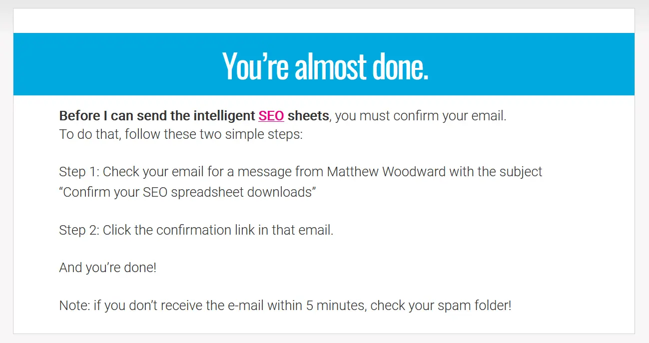 This is Matthew Woodward's thank you page. It's perfect.