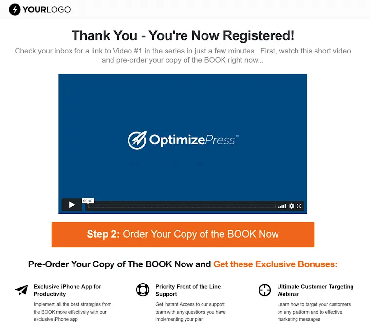 This is one of the thank you page templates in OptimizePress. Another awesome page that meets the criteria.