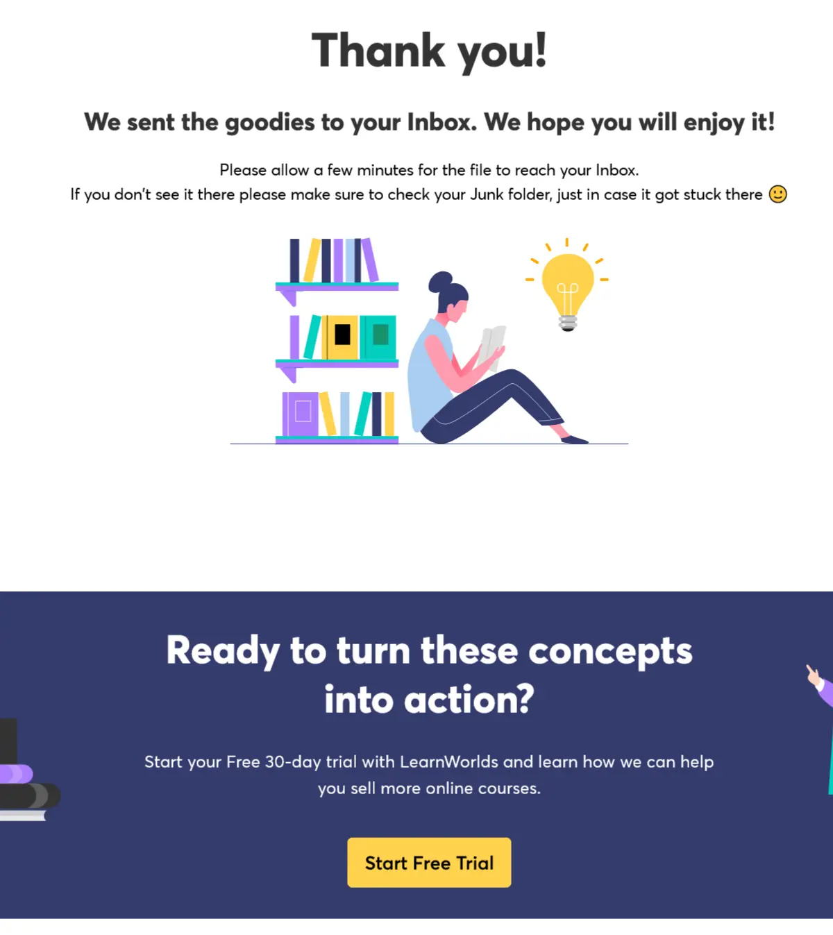 2. Tell them that their freebie has been sent to their email inbox.