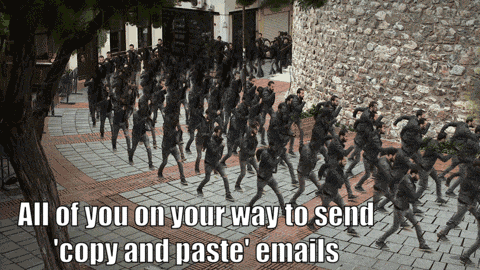If I did that, all of you reading this will blindly copy and paste the emails and become carbon copies of each other.